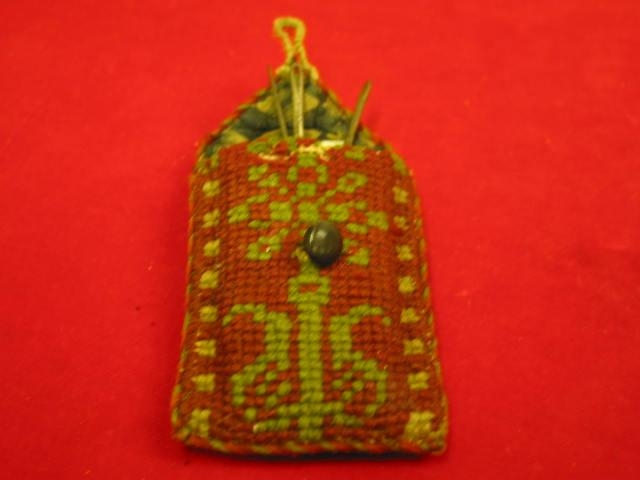 Nálhús + 3 nálar ,prilla eða prillhús var hið algenga heiti á þessari tegund nálhúsa.Sigríður Sigurbjörnsdóttir húsfreyja á Söndum á Akranesi gaf safninu .Hún saumaði það sjálf er hún var um fermingu þá í föðurgarði í Hrísum í Flókadal.