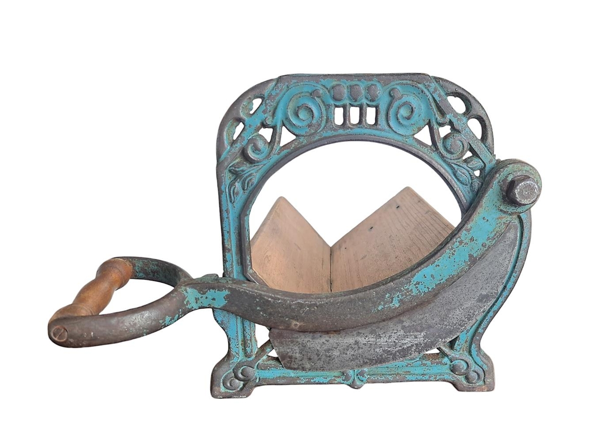 og með járngafl með skrauti. Áfast við gaflinn er hnífur til að skera