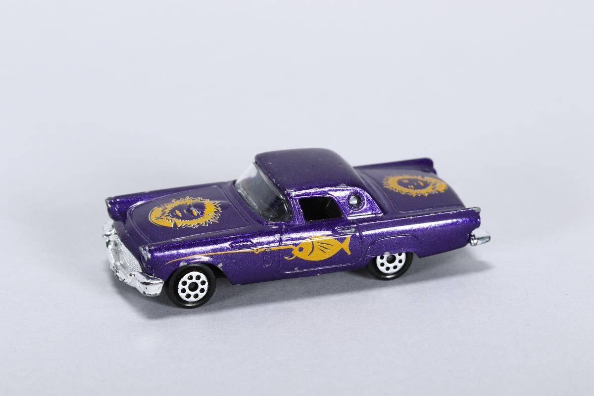 Fjólublár Ford Thunderbird 1957(fyrsta kynslóð) 2 dyra hardtop í hlutfallinu 1:58