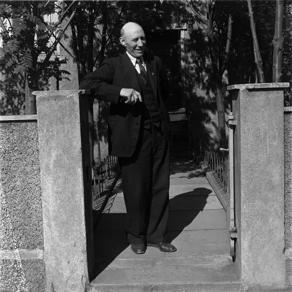 Sigurður Guðnason, formaður Dagsbrúnar, stendur við garðshlið