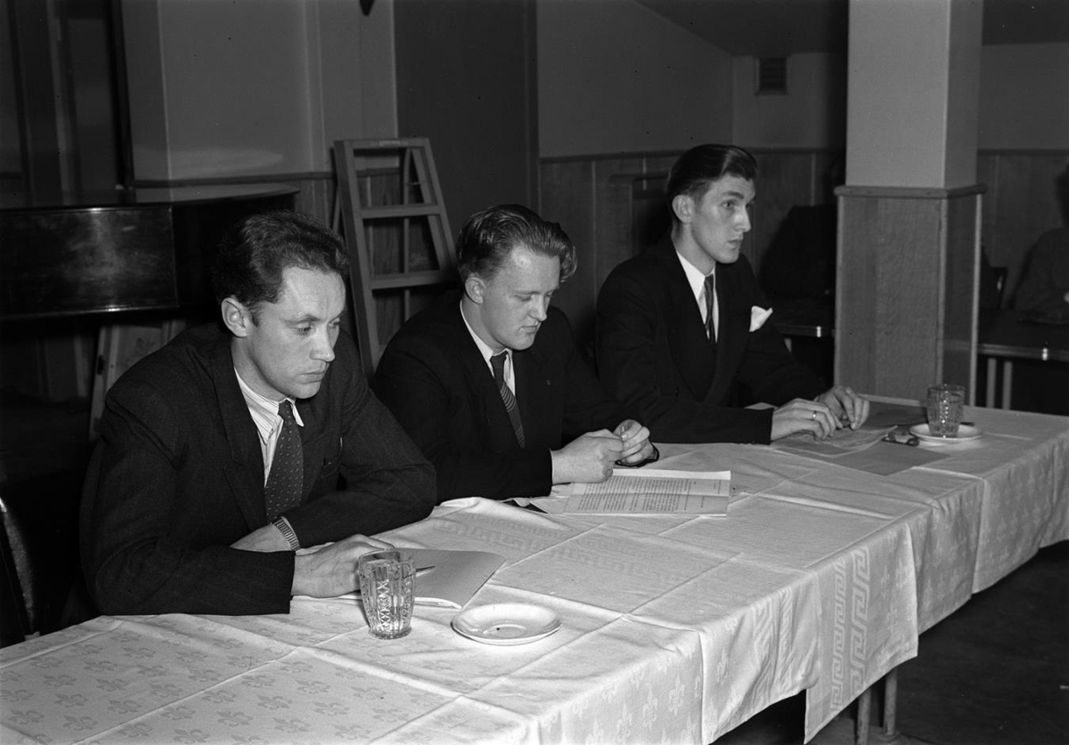 „Fundur í Mjólkurstöðinni. Lengst til hægri er faðir minn, Ingi R. Helgason, hrl. Ég held að sá sem er fyrir miðju sé Sigurður Guðgeirsson, en kannast ekki við þann sem er lengst til vinstri.“ (ÁI 2023)