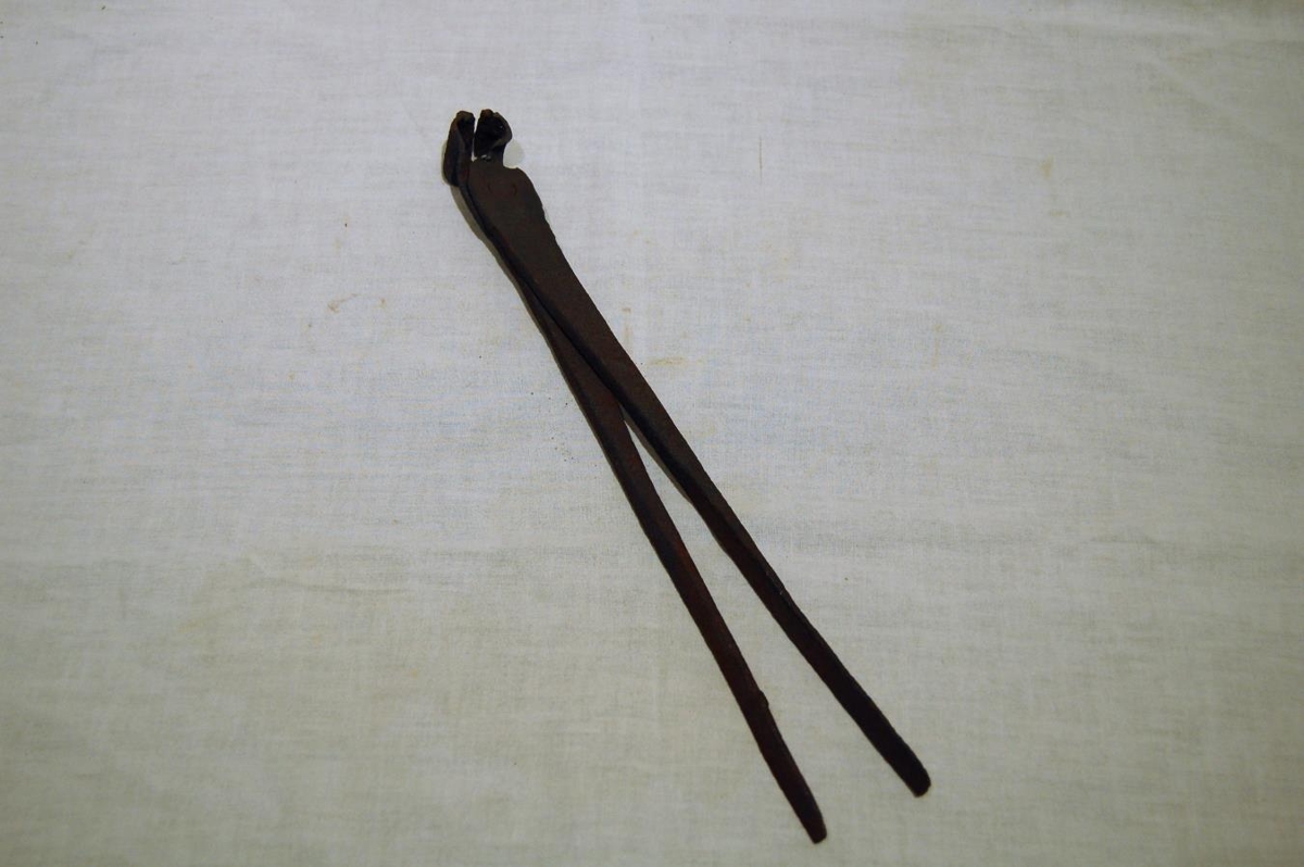 Smiðjutöng sem hefur verið lagfærð í gegnum tíðina. Úr búi Odds Kristjánssonar á Steinum í Stafholtstungu, og síðar í eigu Sæunnar dóttur hans sem notaði gripina þar til hún gaf safninu þá árið 2014.
