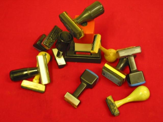 Stimplar ,ýmsar tegundir og gerðir af stimplum (11 stk.) frá Rafveitu Akraness, áður en fyrirtækið var breytt í Akranesveitu .kemur til safnsins 10/11 1997 .Gef. Akranesveita (Ólafur Þórðason bókari Akranesveitu kom með stimplana)