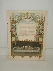 lit með ýmiss konar skrauti og mynd af Síðustu kvöldmáltíðinni. Á fermingarjátninguna