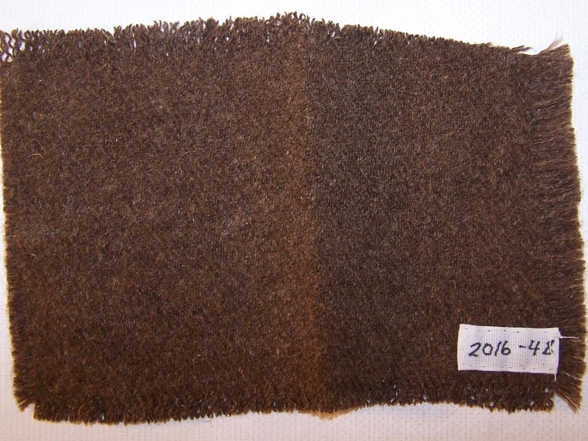 Ljósbrúnt vefnaðarsýni. Kom ásamt 5 öðrum vefnaðarsýnum frá Syðri-Neslöndum. Á miða sem fylgdi stendur: Sigríður Jóhannesdóttir Syðri-Neslöndum spann þráðinn og ívafið í þennan dúk á rokk. Jón Sigtryggsson sonur hennar óf vaðmálið. Birkir Fanndal afhendi vefnaðarsýnin. En Sigurveig Sigtryggsdóttir afhenti honum þau til varðveislu um 2000.