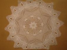 Hann er hringlóttur og hvítur að lit. Viðgerðir á dúknum voru gerðar af