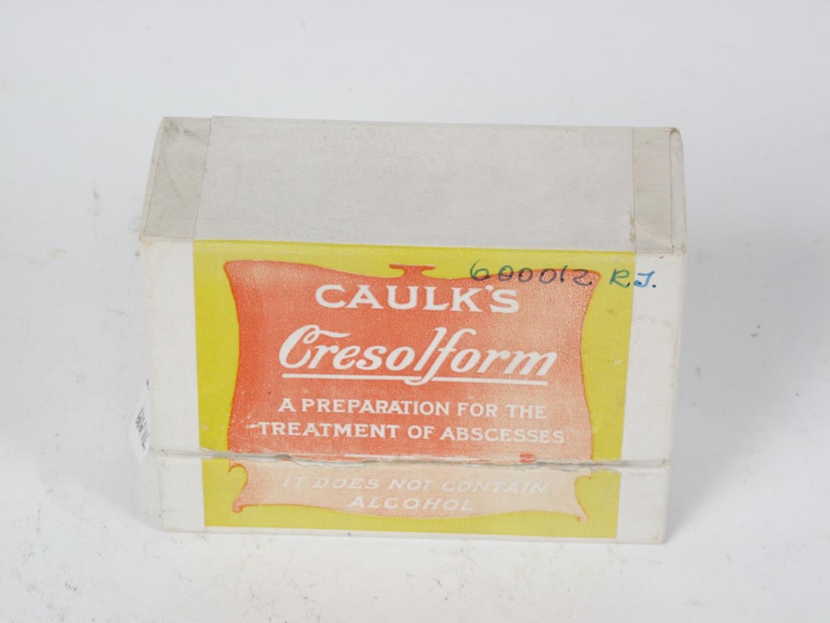 "Kresolform. Notað við abcessmeðferð." Skv. aðfangabók minjafnefndar Tannlæknafélags Íslands. Sótthreinsunarefni vegna graftar rótargöngum. Tvær glerflöskur, önnur inniheldur vökva og hin duft. Pappaaskja og leiðbeiningar um notkun.