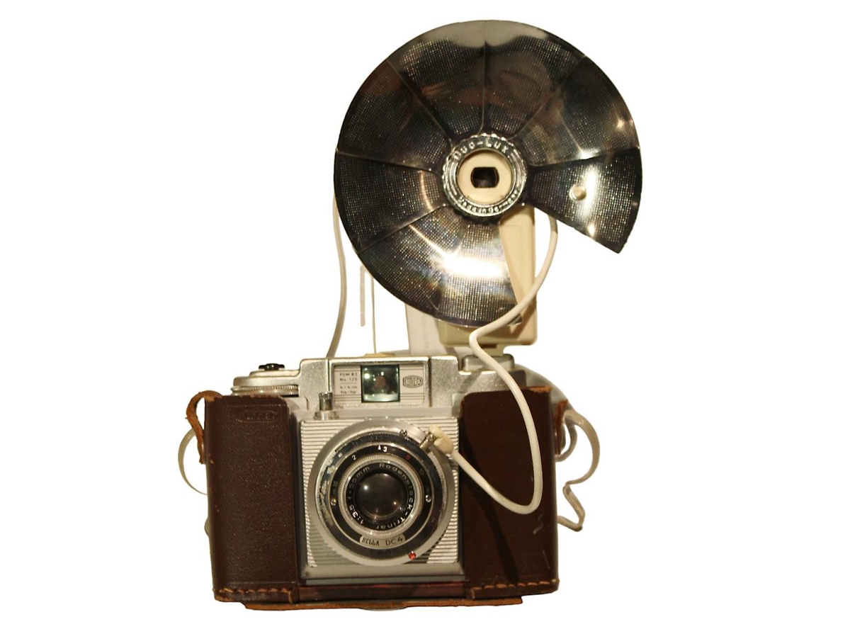 Ljósmyndavél -Vél af gerðinni BILORA með flassi af gerðinni DUO-LUX. Vélin notar filmustærð 120 .Var keypt í byrjun 1960. Kassavél /ásamt tösku.