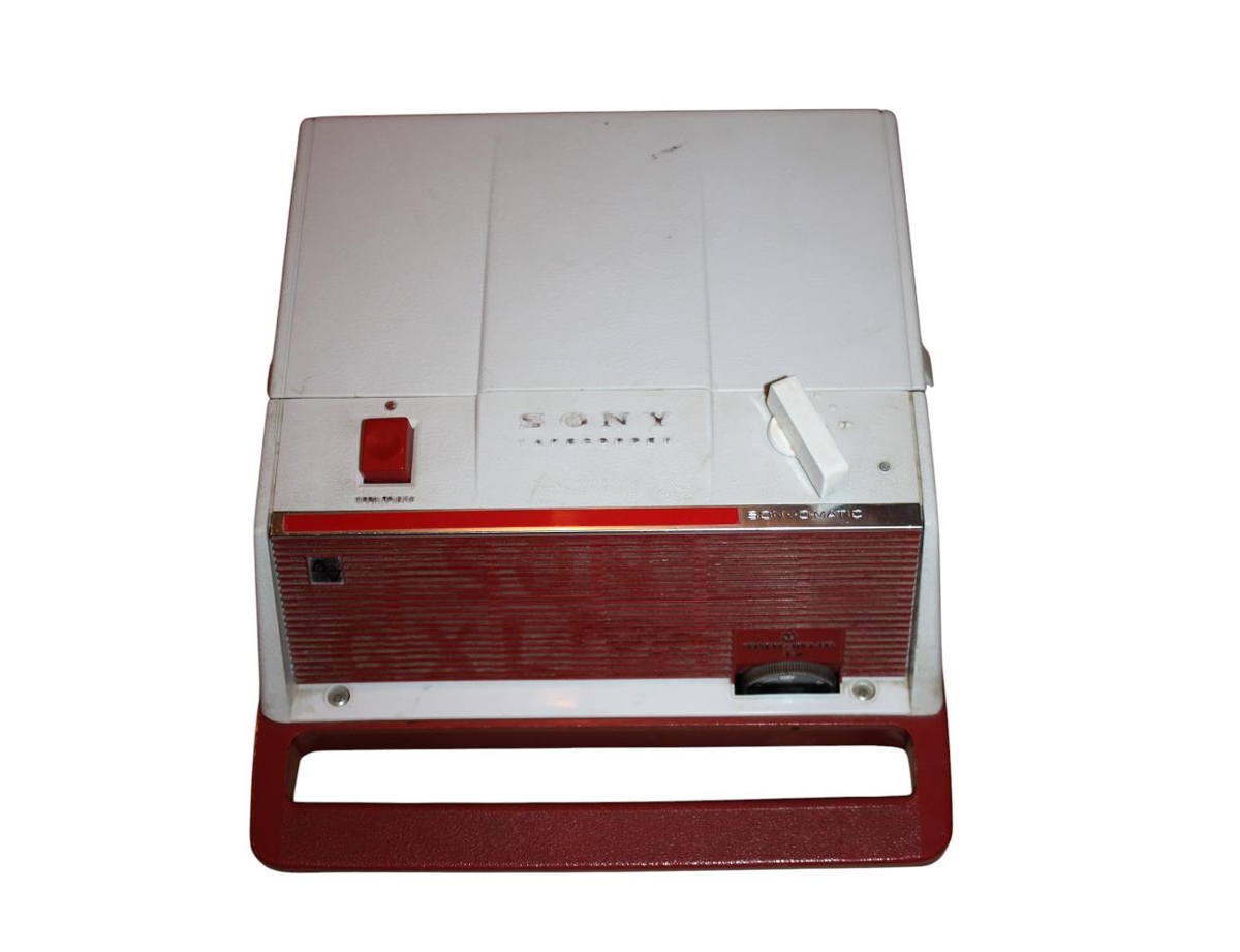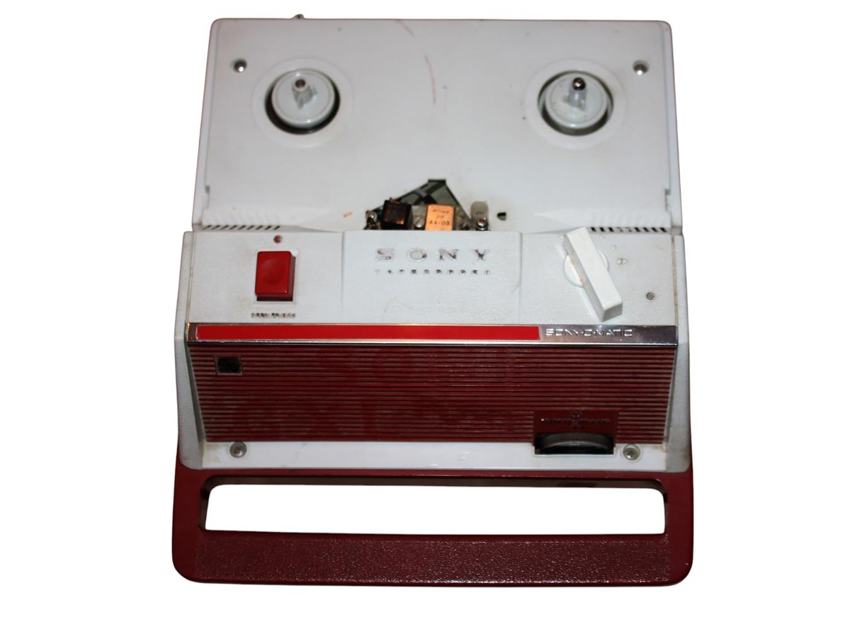 Segulbandstæki af gerðinni Sony TC 135 ásamt 2 spólum frá ca.1973. Tækið er í tösku merkt Sony og fylgir með leiðbeiningarbæklingur. Eigandi Björn Þórhallsson f.1956 Vallholti 15 ,afh. Þórhalli Björnssyni. Tækið var upphaflega framleitt af Sony í Japan árið 1968-1969 og eignaðist Björn tækið í kringum 1972-1973. Tækið er rautt og hvítt með takka að framan til þess að stjórna hljóðstyrk. Ofan á tækinu eru tveir takkar, annar rauður sem stjórnar upptöku og hinn hvítur sem stjórnar afspilun o.fl. Hvítt lok er yfir spóluhúsi. Hátalari er innbyggður að framan. Á vinstri hlið tækisins eru þrjú inntök þar sem hægt er að stinga í samband og nota míkrafón, hátalara og tengja við útvarp. Innstunga er tengd við tækið. Með tækinu fylgdu 2 segulbandsspólur af gerðinni SONY PR-150, framleiddar í Japan. Spólur af þessari gerð var fyrst farið að framleiða árið 1964-1965 . Eigandi tækisins eigðanaðist spólurnar í kringum 1973. Stærð spólu 13.5 x 13.5 x 1.5 cm.