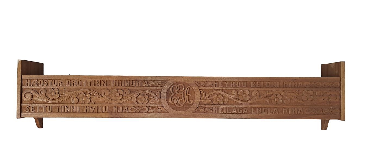 smíðuð og útskorin af Guðmundi þegar Elka dvaldist á Dvalarheimilinu að
