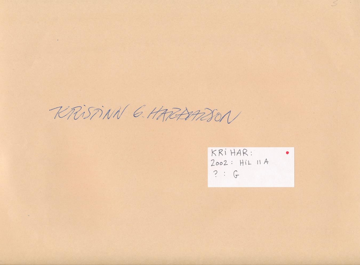 Tómt umslag, framan á stendur Kristinn G. Harðarson. Á hvítum miða stendur KRI HAR: 2002: Hil II A ?: G.