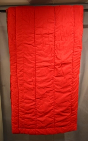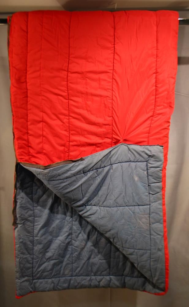 Svefnpokinn er rauður að lit með rennilás á hlið. Ytrabyrðið er nælon en fóðrið er blátt bómullarefni. Fyllingin er ullarkemba.