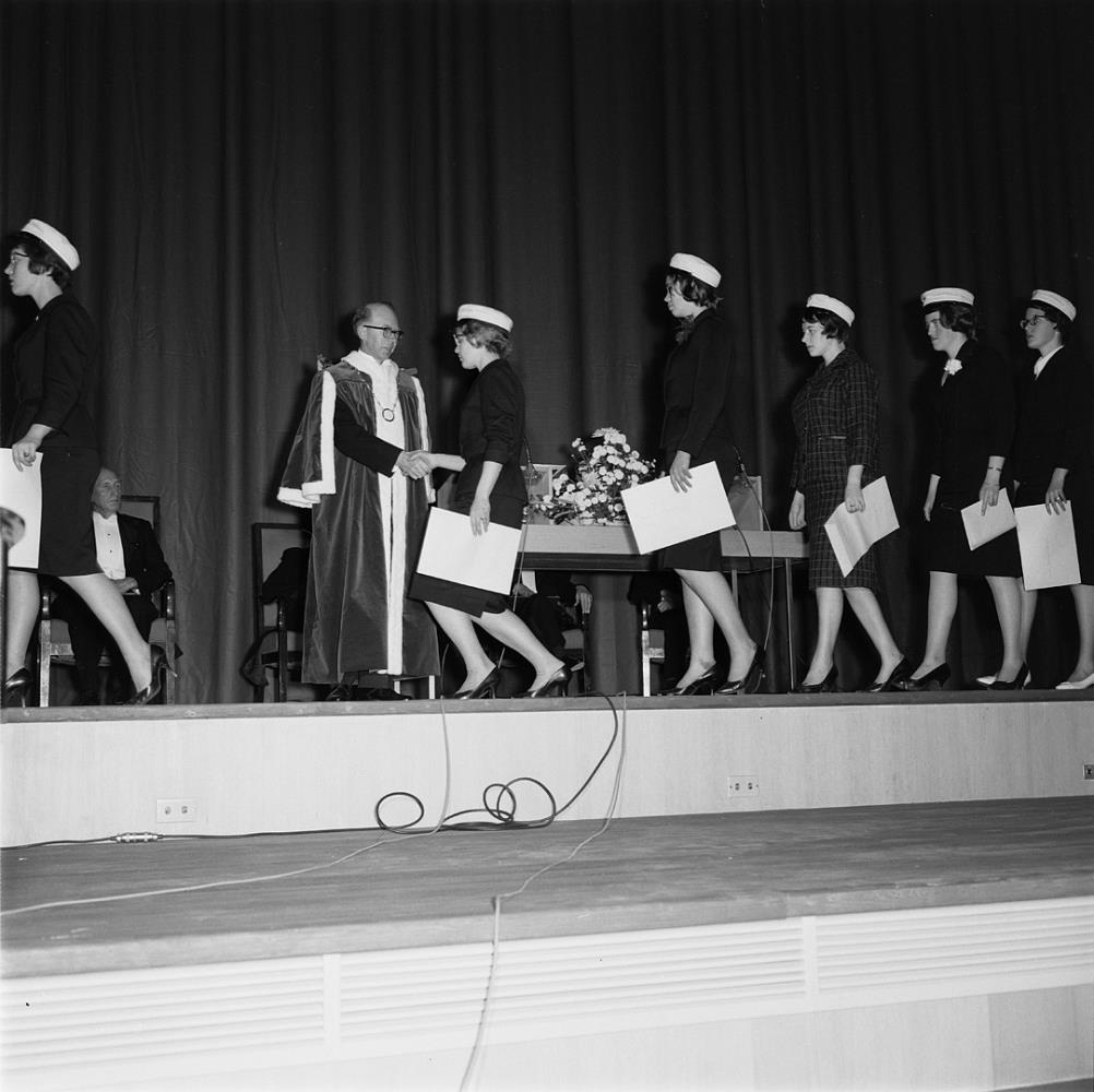 Háskóli Íslands 50 ára – Hátíðarsamkoma og háskólahátíð í samkomuhúsi háskólans við Hagatorg, föstudag 6. október 1961 og laugardag 7. október 1961. Við sama tækifæri var samkomuhús háskólans (oftast nefnt Háskólabíó) vígt.
