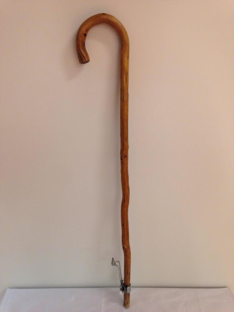 Göngustafur úr svignum við með járnbrodd sem hægt er að setja undir stafinn.