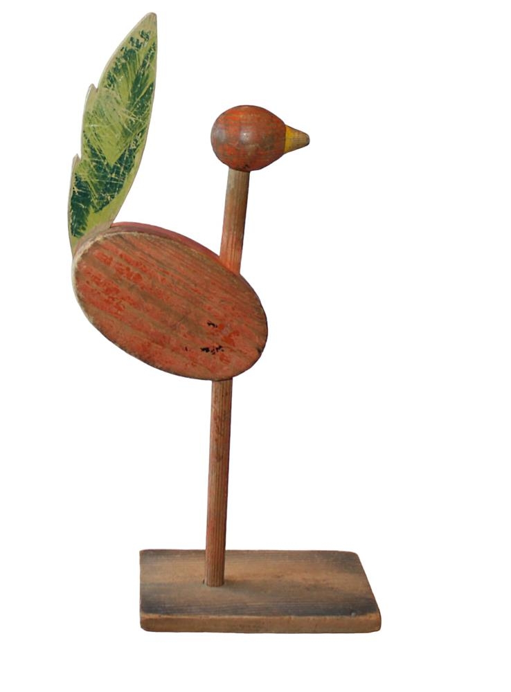 Háfættur fugl með hringjum til að kasta á hausinn. Kemur úr dánarbúi Valgerðar og Þórodds á Bekansstöðum