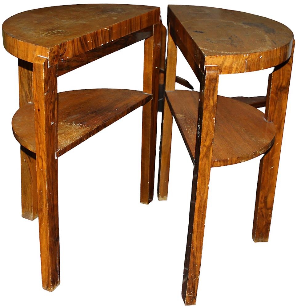 Sófi, stóll, borð með útdranlegum glerplötum, bókahillur, boginn hronskápur, bókahilla með glerhurðum og tvö lítil 1/2 hringborð. Sérmíðað fyrir Sænsk-Íslenska fyristihúsin um 1930.