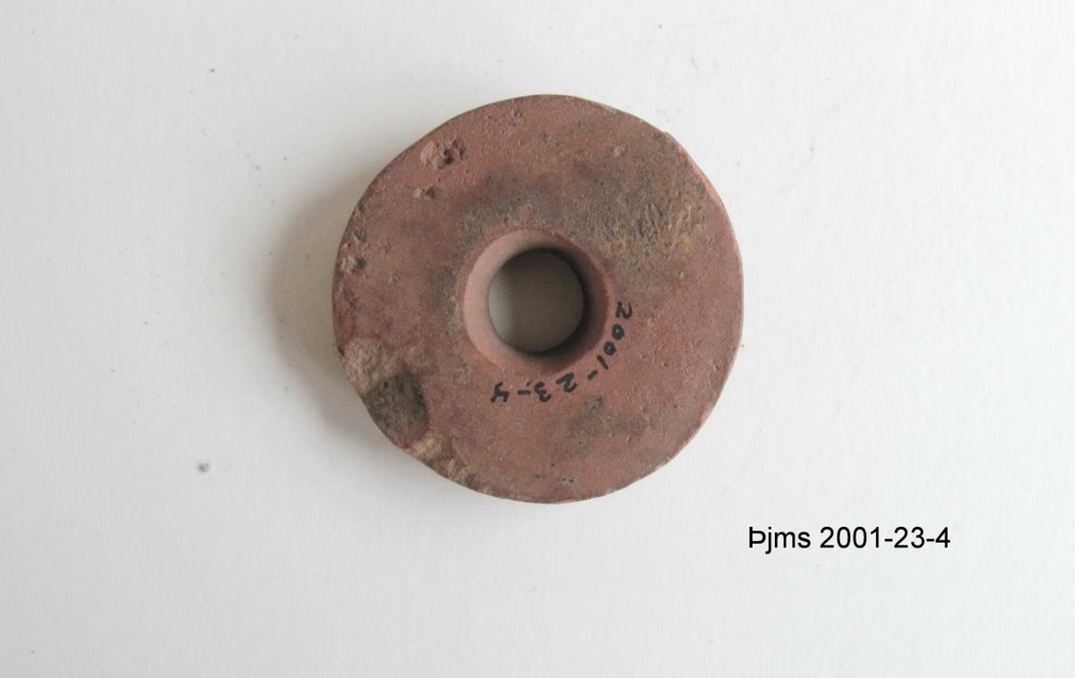 Lítill snældusnúður úr rauðleitu bergi. Munir sem Ásgeir Svanbergsson kom með. Tvær kolur úr rauðu bergi. Tveir snældusnúðar. Brot úr kljásteini. Gjallmoli. Brot úr brýni ofl. Ásgeir var bóndi á Þúfum í Reykjafjarðarhreppi við Ísafjarðardjúp 1955-1971. Á því tímabili stakk hann upp kartöflugarðinn. Þar komu þessir munir upp. Vitað er að um 1900 var þar smiðja. Þeir eru áreiðanlega frá miðöldum.