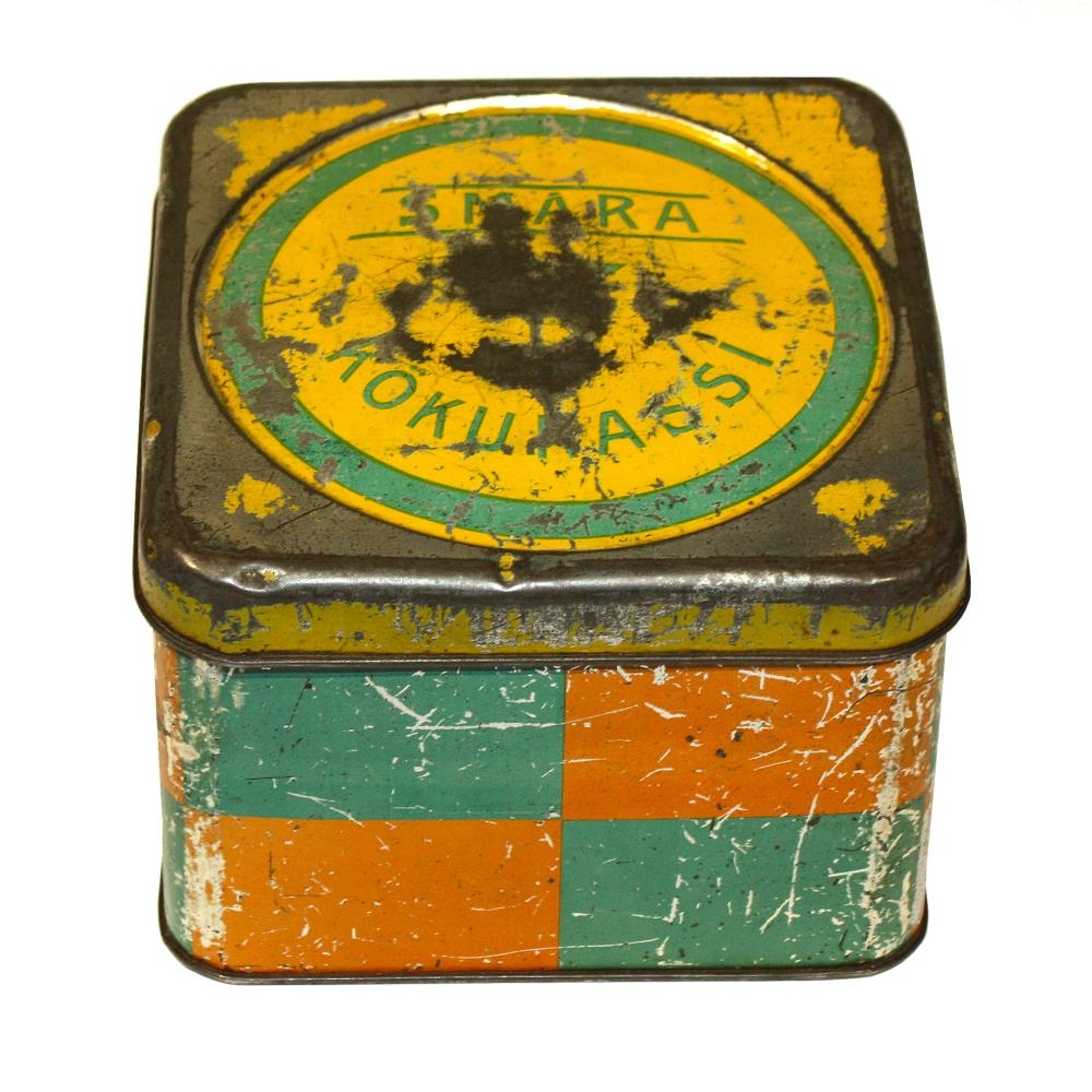 Kökubox, merkt SMÁRA KÖKUKASSI. Kemur sennilega frá Smára smjörlíki. Kemur úr dánarbúi Valgerðar og Þórodds á Bekansstöðum
