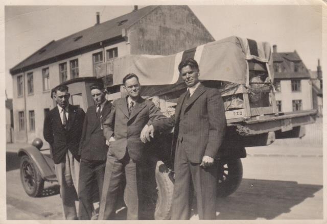 Frá vinstri. ?, Hinrik Guðbrandsson á Spágilsstöðum, Jóhann Bjarnason og ?