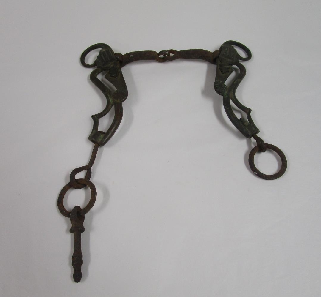 Beislisstangir og mél. Sennilega úr eigu Jóns Eyjólfssonar sem bjó og rak verslun í Sjávarborg (Hafnargötu 4) í Stykkishólmi (1936 - 1950). Jón var hestamaður og hafði hesthús í kjallara Sjávarborgar. Beislisstangirnar og mélin fundust þar.