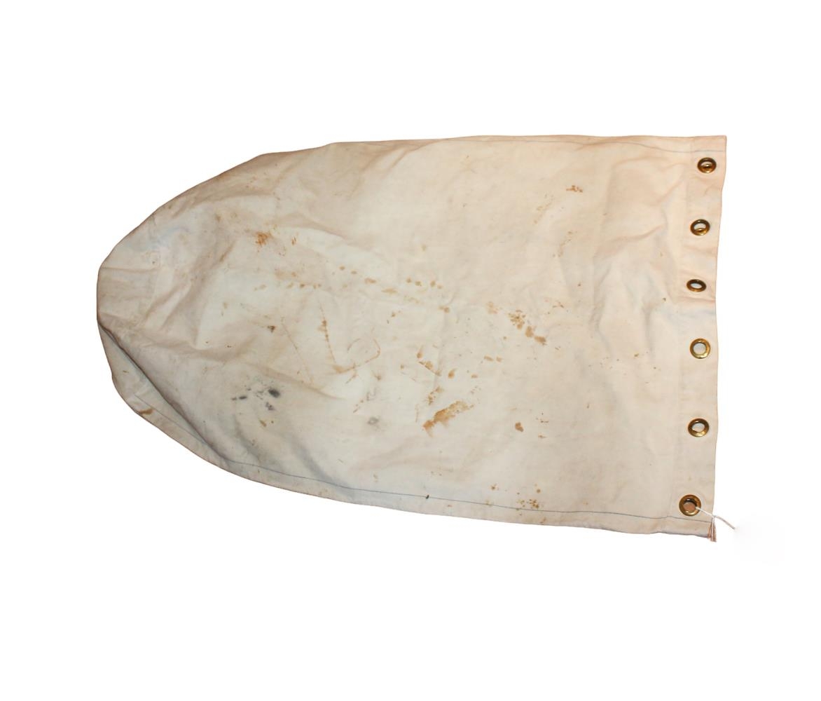 Sjópoki, saumaður úr hvítum segldúk. Kemur úr dánarbúi Valgerðar og Þórodds á Bekansstöðum