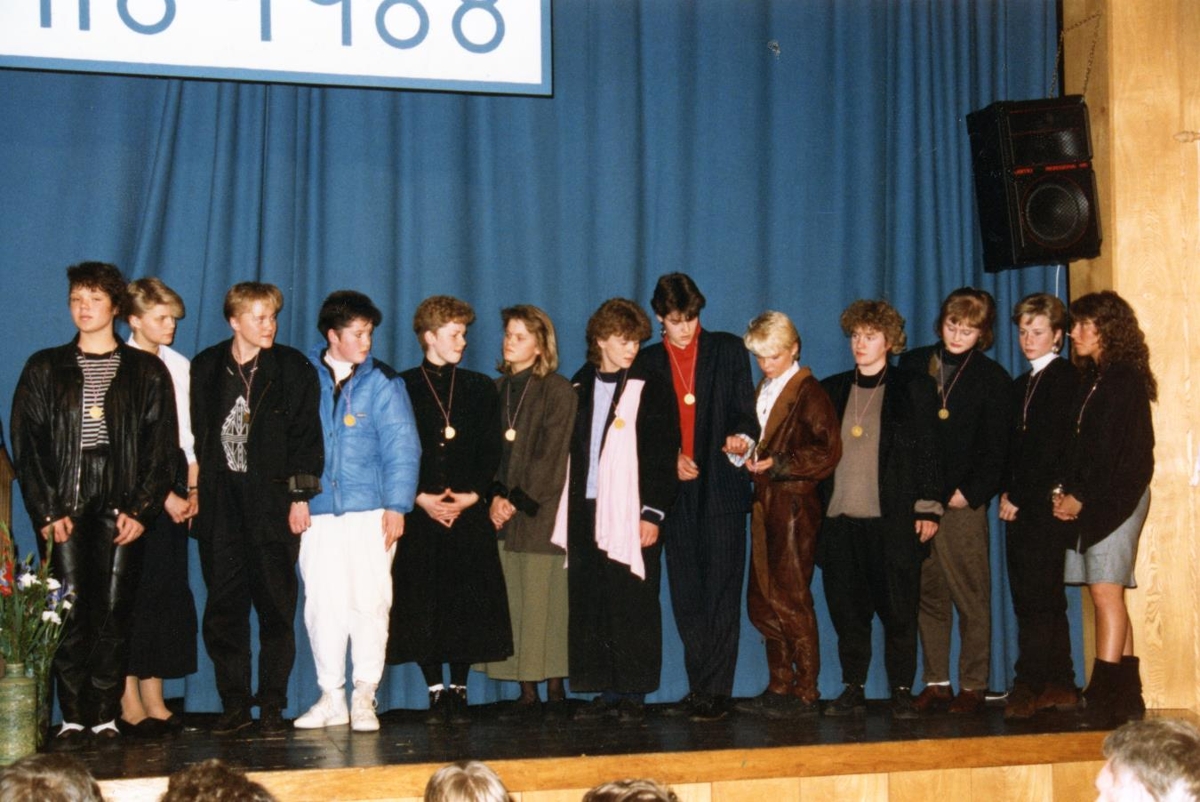 Knattspyrnulið Umf. Ólafs páa vinningshafi kvenna. 70 ára afmælishátíð UDN 30. mars 1988.