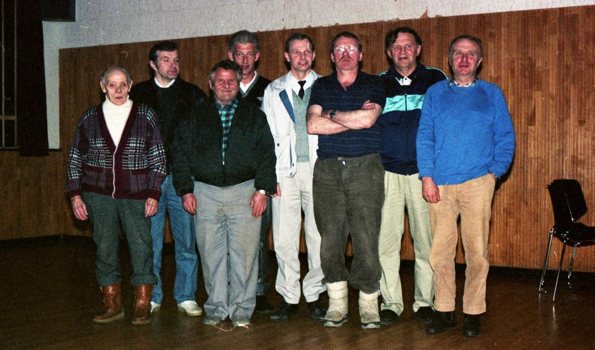 Frá vinstri Guðbjartur Jóhannsson í Miklagarði, Jón Jóhannsson á Þverfelli, Davíð Stefánsson á Saurhóli, Ólafur Gunnarsson í Þurranesi, Ólafur Þór Jóhannsson, Gísli Gunnlaugsson, Einar Stefánsson úr Búðardal og Gunnar Kristjánsson á Bugðusstöðum.