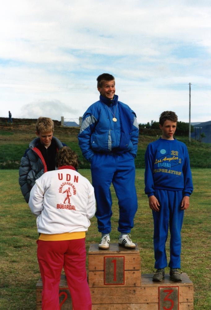 Frá vinstri á palli. 2. Óþekktur, 1. Gunnar H. Gunnarsson Umf. Ólafur pái og 3. Arnar Ingi Lúðvíksson