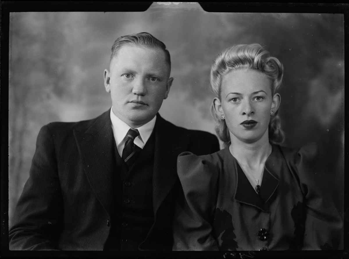 „Þetta eru Elínborg Þuríður Þórðardóttir f. 11.09.1917 frá Gufuskálum á Snæfellsnesi og Sigurður Friðriksson f. 08.04.1908 frá Gamla Hrauni. Myndin er tekin á brúðkaupsdegi þeirra (held árið 1942).“ (ER 2024)