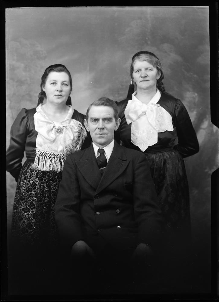 Frá hægri til vinsti. V. Ingibjörg Filippusdóttir, ljósmóðir, Hellum, Landssveit. 23. ágúst 1891 - 24. okt. 1976. Bróðir hennar Björgvin, f. 1893 og hans kona Jarþrúður Pétursdóttir, f. 1897. (LME 2018)