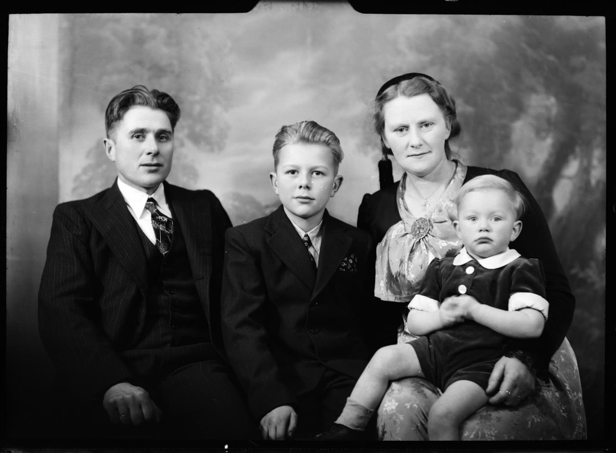 Jón Gíslason, kona hans Matthildur Árnadóttir og synir, Júlíus eldri drengur og Gunnar sá yngri. Þau bjuggu á Grettisgötu 19a Reykjavík. (IJ 2018)