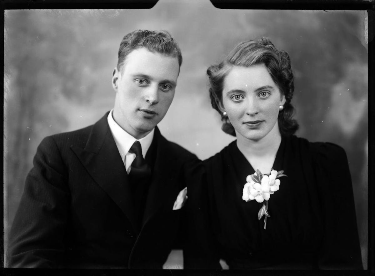 Foreldrar mínir 15.05.1943 à brúðkaupsdaginn. Bryndís Tòmasdóttir f. 01.04.1925 í Hafnarfirði d. 15.01.2011. Eiríkur Helgi Guðnason f. 24.09.1918 í Reykjavík d. 10.09.1999. Þessi mynd er til à heimili mínu og einnig hjà syni mínum. Alfreð kom oft í heimsókn til foreldra minna en hann var skyldur foður mínum. (AE 2018)