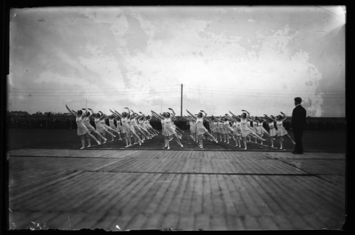 Þetta er syning á Melavelli 1930 fimleika félagið Armann. Mamma mín er þarna, Steinunn Þórdís Ottósdóttir fd. 28.05.1910. (MN 2018)