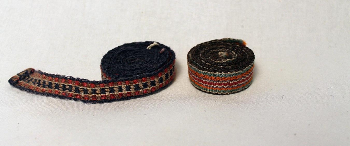 Sokkabönd, spjaldofin, 12.5 cm á lengd og 1.5 cm á breidd. Voru í eigu Jódísar Guðmundsdóttur, sem lengi var vinnukona á Arnbjargarlæk, í Þverárhlíð.