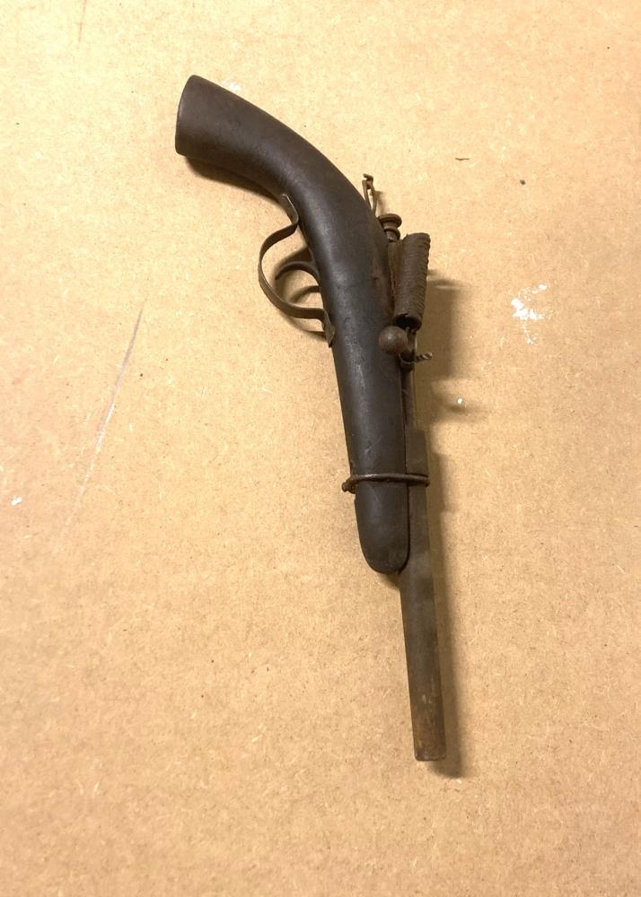 Fjárbyssa úr búi Sigurþórs Jónassonar bónda í Efri-Kvíhólma (d. 2009). Jón hirti hana úr rusli í Kvíhólma af Sigurþóri brottfluttum, "lá á glámbekk í opnu eyðihúsi" eins og Jón sagði. Byssan er í heldur laklegu standi og viðgerð heldur hroðvirknisleg. Lengd 40 cm. Framleiðslunúmer sést ekki.