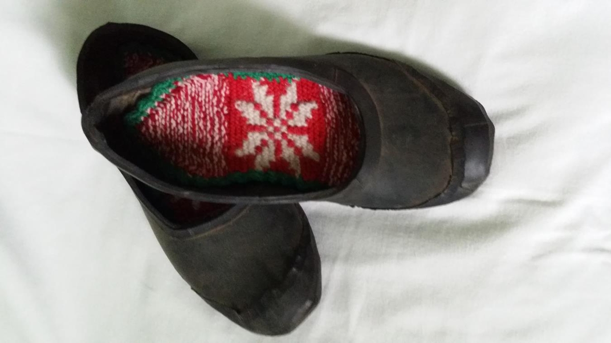 Gúmmískór nr. 36. Handgerðir úr gúmmíslöngu. Algengt skótau á árunum 1930 - 1960. Koma úr verslun Runólfs Guðmundssonar, póst og kaupmanns frá Ásbrandsstöðum í Vopnafirði.