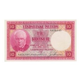 10 krónu seðill úr þriðju seðlaröð Landsbanka Íslands.
