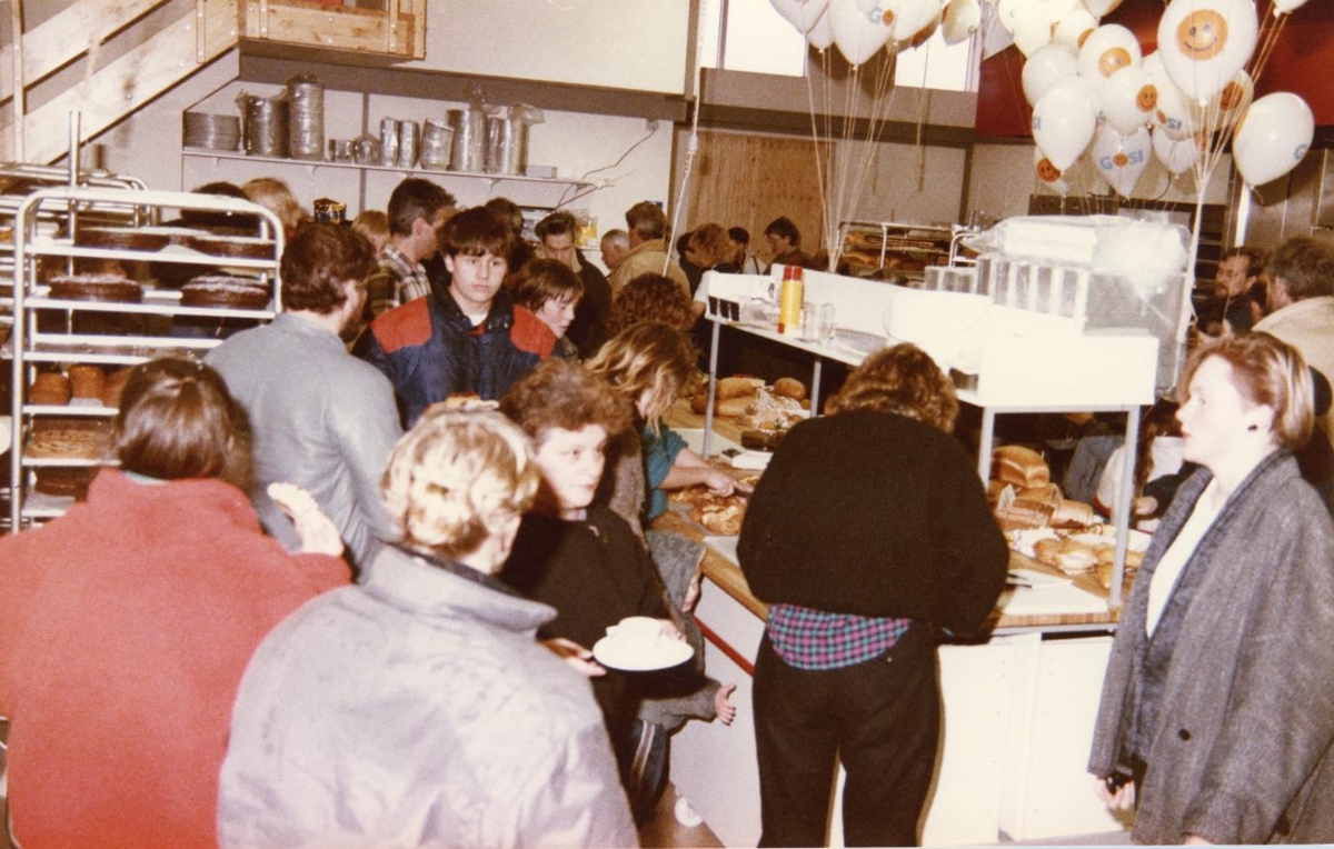 Ljósmyndir úr vígslu brauðgerðar Kaupfélags Hvammsfjarðar 2. nóvember 1985 að Vesturbraut 12a í Búðardal. Brauðgerðin var rekin af kaupfélaginu til 16. júní 1989. Bakarameistari var Kristján Skarphéðinsson.