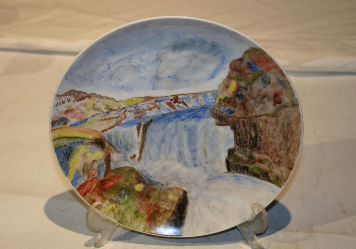 Handmálaður platti af Gullfossi