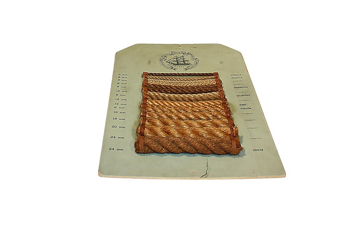 Platti með sýnishornum af ýmsum gerðum af köðlum sem voru framleiddir af Jacob Holm & Sönner í Kaupmannhöfn. Þegar Axelsbúð (Skipaverslun Axels Sveinbjarnarsonar) var rifinn í september 2005, fékk Byggðasafnið hluti úr lager til að sýna.