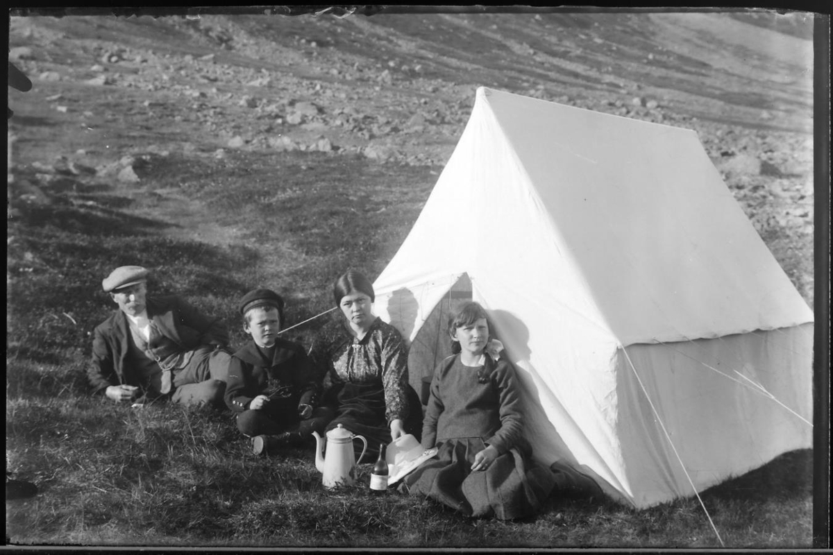 Í berjamó (Norðfirði). Talið frá vinstri: Steingerður Björnsdóttir, Katrín Málfríður Arngrímsdóttir, Ari Björnsson, Björn Björnsson elsti.
