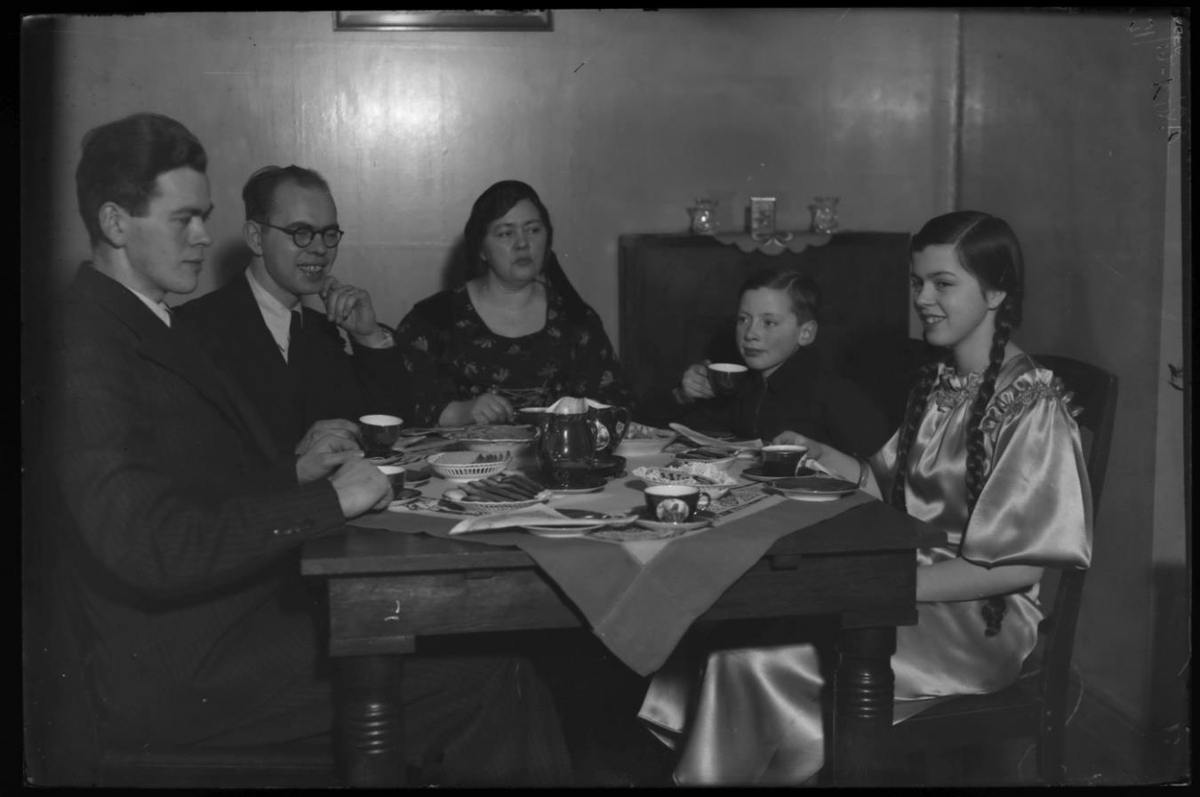 Á heimili BB og Málfríðar, Bakka, Norðfirði. K.M.A. Ásamt börnum þeirra: Björn, Ari, Jóhanna og Steinarr.