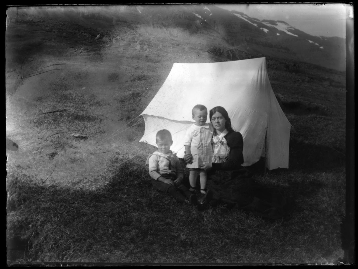 Málfríður Arngrímsdóttir með syni sína Björn og Ara (stendur)