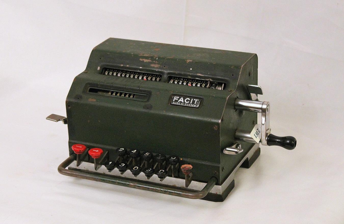 Handknúin reiknivél af gerðinni FACIT. Frá Kaupfélagi Borgfirðinga.