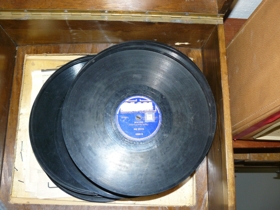 Plötuspilari, handtrektur grammófónn sem var í eigu Unu Guðmundsdóttir frá Sjólyst í Garði. 36 hljómplötur, 7-8 snúninga fylgdu með grammófóninum.