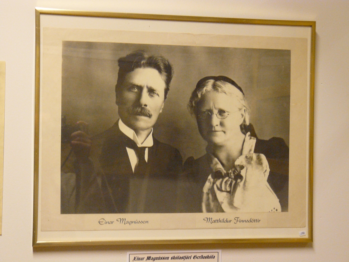 Ljósmynd í ramma af hjónunum Einari Magnússyni (1878 - 1947) fyrrum skólastjóra í Gerðaskóla og Matthildi Finnsdóttur (1876 - 1942). Gefandi: Þorsteinn Sigurberg Sigvaldason (1935 - 2006), sonur hjónanna Sigvalda Sveinbjörnssonar frá Eiði í Garði og Ingibjargar Þorsteinsdóttur.