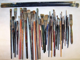 Fata með málningarpenslum úr eigu Sigurðar Hallmarssonar (Didda Hall). Fatan er úr blikki og inniheldur 43 málningarpensla í ýmsum stærðum. Þetta bar Sigurður með sér þegar hann málaði listaverk, hvort sem heldur hann var staddur úti í náttúrunni eða heima við.