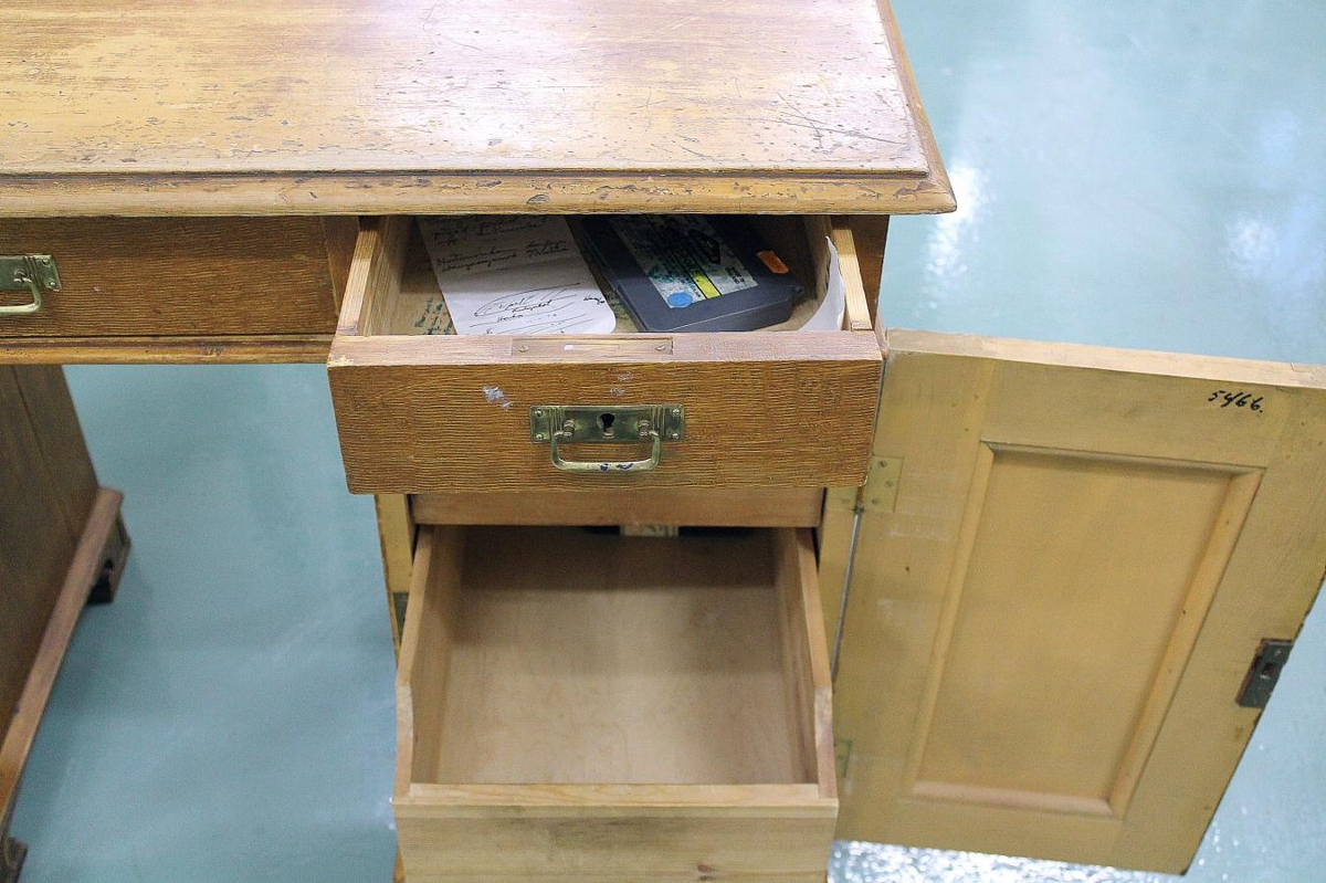 Skrifborð úr dánarbúi Ingibjargar Sigurðardóttur og Guðmundar Böðvarssonar, skálds á Kirkjubóli í Hvítársíðu.