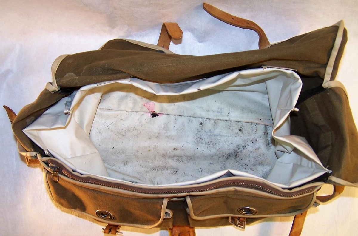 Listmálarataska úr eigu Sigurðar Hallmarssonar (Didda Hall). Taskan er úr grænu strigaefni en botninn er úr hvítu leðri. Hún er fóðruð að innan með hvítum, vatnsheldum dúk. Á töskunni eru sylgjur og ljósbrúnar leðurlokur. Töskuna notaði Sigurður til þess að geyma þá hluti sem hann þurfti að nota við listsköpun sína, svo sem litatúpur og pensla.