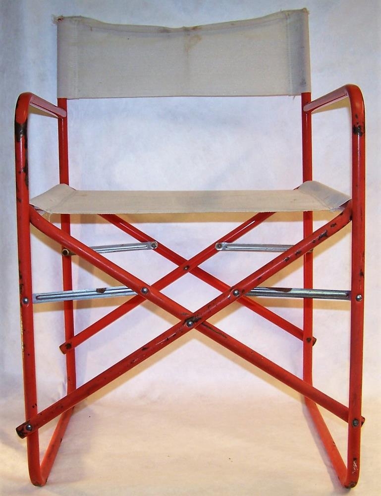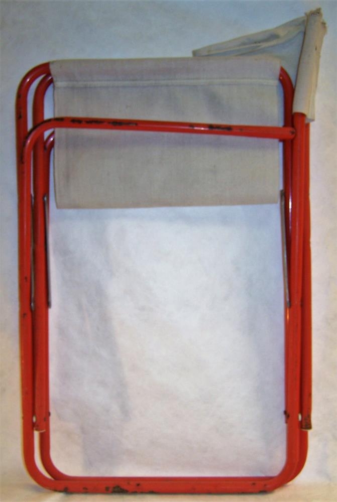 Fellistóll úr eigu Sigurðar Hallmarssonar (Didda Hall). Stóllinn er með rauða járngrind. Sætið og bakið eru úr hvítu strigaefni. Stólinn bar Sigurður með sér og notaði þegar hann málaði utandyra.